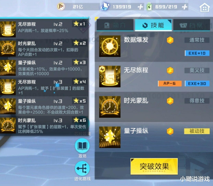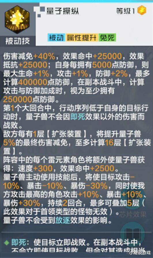 量子兽最中枢的独到之处,便是围绕【推广安设】构建的整套压制体系,这是其他数码兽都莫得的专属机制。她的频繁技可以单体重复【推广安设】,最多 8 层;骄横技会在速率低于本人的敌方行径后,自动赋予层数并削减其 75% 注意与 25% 伤害减免,还能在被充军的敌方总结战场时,把柄层数扣除其最大生命值与 2 点 AP,等于隶属性、节拍、续航三个维度握续压制敌手。