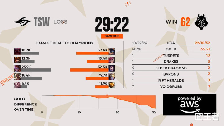 效用第一局比赛,G2就打出了横扫局。3分钟,河谈混战,Caps阿狸在队友勾通下打败阿萝拉,拿下一血;17分钟,中路爆发团战,Hizto嘉文四世击飞兰博开团,Dire阿萝拉天真游走拿下三杀,TSW打出一换三;25分钟,下路混战,Hans Sama伊泽瑞尔高额伤害拿下双杀,G2打出一换二;28分钟,G2中路结合五东谈主,BrokenBlade兰博在团战中斩下双杀,G2赢下团战后推平基地拿下收效。