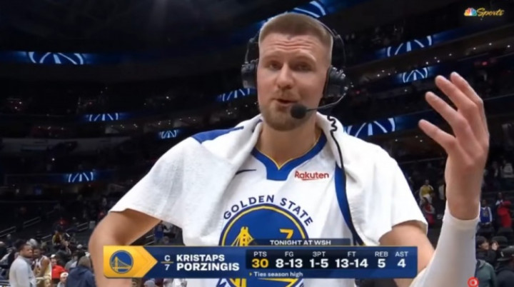 直播吧3月17日讯英豪当天在客场125-117力克奇才,赛后,波尔津吉斯在场边接纳了记者采访。