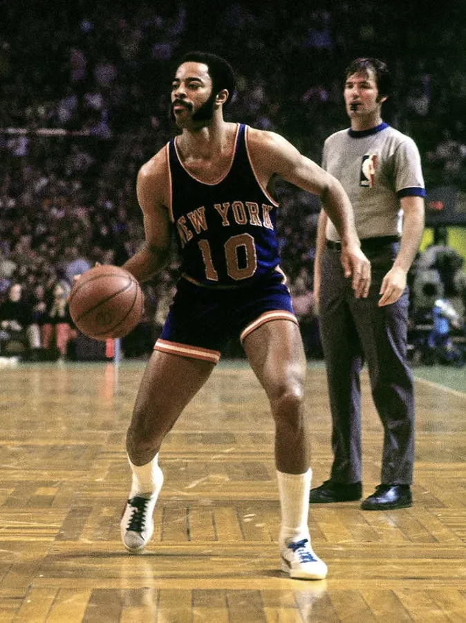 1970年尼克斯和湖东谈主的总决赛抢七,统共东谈主都紧记威利斯·里德瘸着腿王者归来,可真要说那场球的定海神针,得是沃尔特·弗雷泽。17投12中,36分19助攻7篮板5抢断,把湖东谈主全队给打懵了。